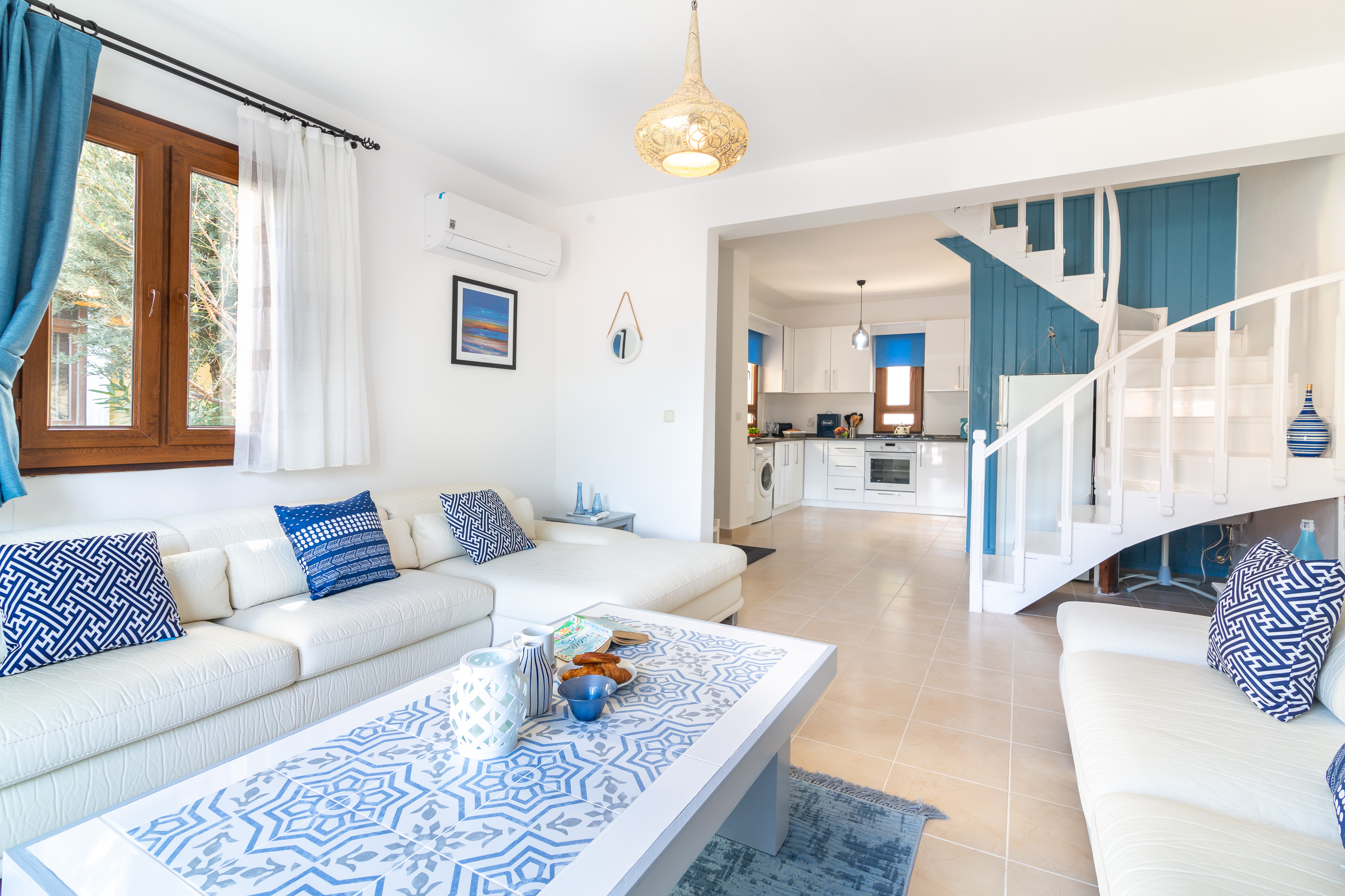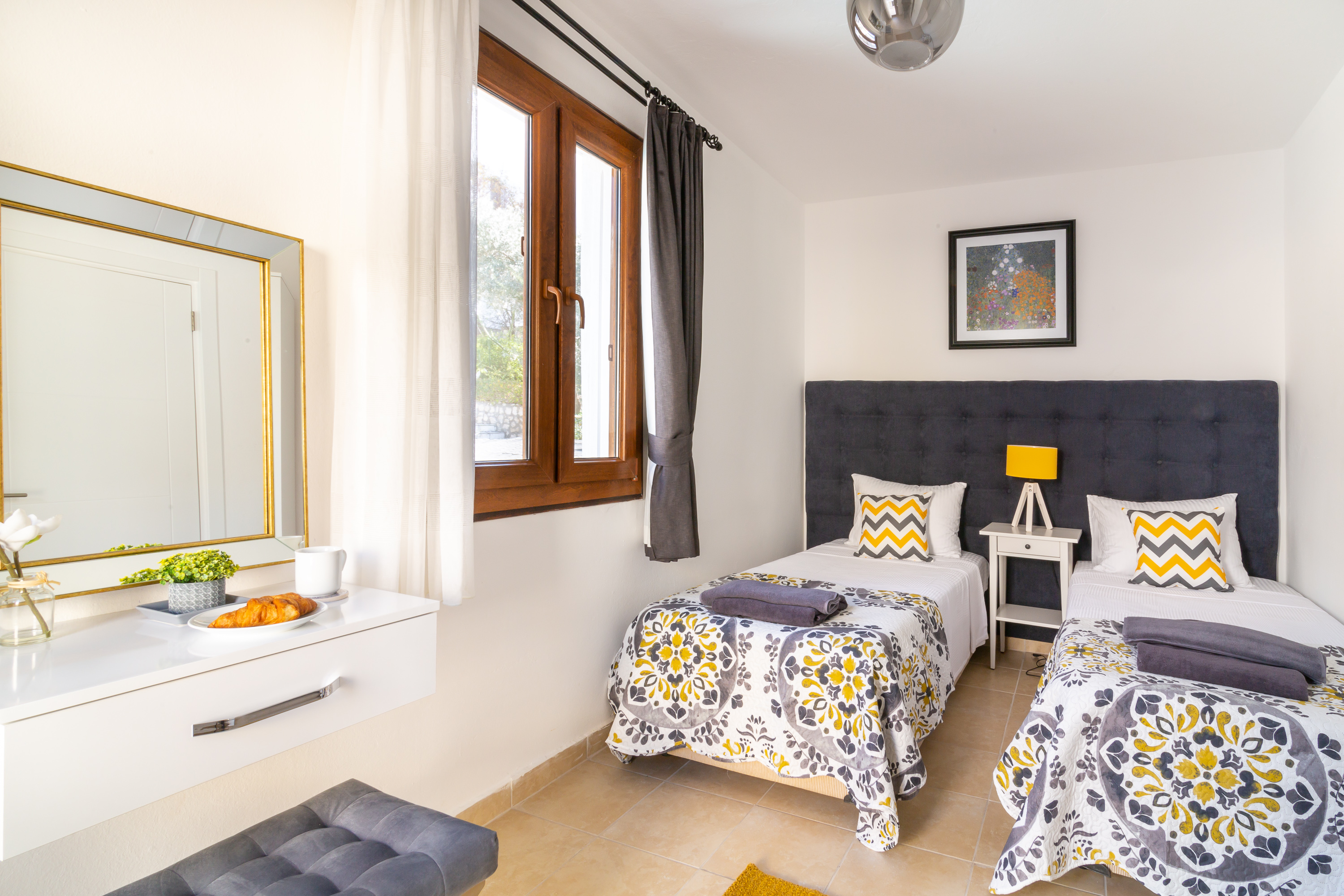 Entry to Aimee’s House is through charming iron gates and well-kept gardens. The sun-trapped pool - one of the most sizeable in Kalamar Bay and shared with just four villas - can be directly accessed from the villa. There’s plenty of comfortable sunny and shady spots around the pool and gardens, as well as two private balconies and a roof-top terrace overlooking the bay.